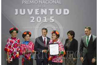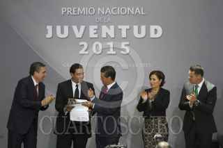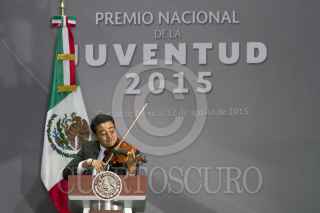 MÉXICO, D.F., 12AGOSTO2015.- Tito Quiroz Angulo recibió el premio por Compromiso Social en el marco del Premio Nacional de la Juventud 2015, que se realizó en el Palacio Nacional. FOTO: MOISÉS PABLO /CUARTOSCURO.COM