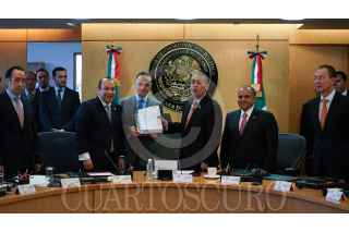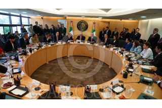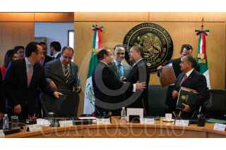 MÉXICO, D.F., 12AGOSTO2015.- Manlio Fabio Beltrones, presidente de ja Junta de Coordinación Política de la Cámara de Diputados, entregó los "Libros Blancos" al Secretario de la Cámara de Diputados, Mauricio Farha acompañado de los coordinadores de las fracciones y el presidente de la mesa directiva, como ultimo acto del diputado Beltrones frente a la Jucopo. FOTO: SAÚL LÓPEZ /CUARTOSCURO.COM