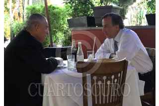 MÉXICO, D.F., 12AGOSTO2015.- Este miércoles, el secretario de Relaciones Exteriores, José Antonio Meade Kuribreña, comió en un restaurante de la zona rosa con el doctor Miguel Basáñez, designado embajador de México ante los Estados Unidos de América. FOTO: SRE /CUARTOSCURO.COM