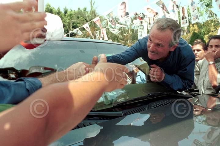 Francisco Labastida Ochoa saluda a los asistentes al cierre de campaña en esta ciudad. FOTO: Inti Vargas/CUARTOSCURO.COM