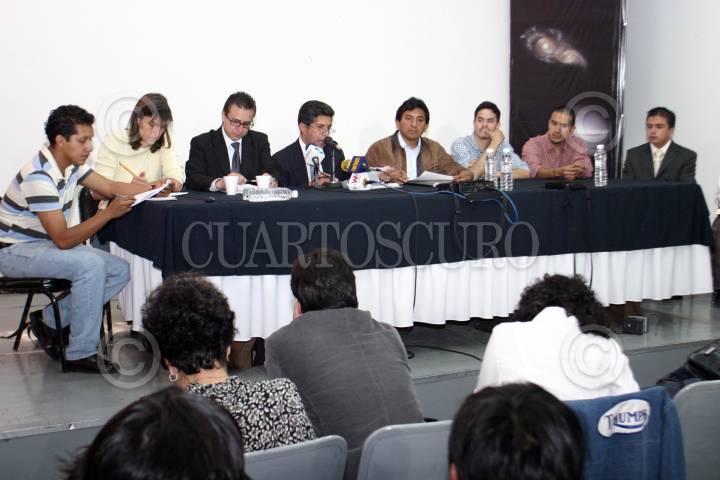 MEXICO, D.F., 19MAYO2006.- El abogado Juan de Dios Hernández Monge, defensor de varios habitantes presos en la toma del pueblo de San Salvador Atenco, junto con varias organizaciones simpatizantes para dar a conocer la situación legal de los que siguen recluidos en el penal de Santiaguito. FOTO: Moisés Pablo/CUARTOSCURO.COM