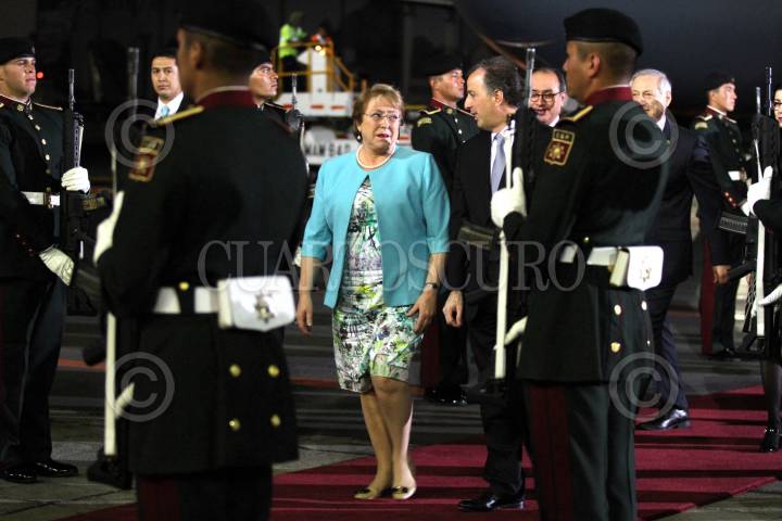 MÉXICO, D.F., 12AGOSTO2015.- Michelle Bachelet Jeira, presidenta de Chile, a su arribo a al hangar presidencia en su visita de Estado al país. FOTO: ADOLFO VLADIMIR /CUARTOSCURO.COM