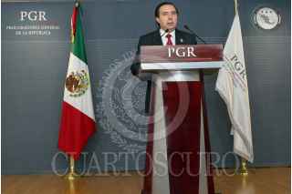 MÉXICO, D.F., 13AGOSTO2015.- Tomás Zerón, director de la Agencia de Investigación Criminal de la PGR, ofreció una conferencia en donde confirmó el traslado de "El Menchito" al Penal del Altiplano. Rubén Oceguera González, considerado el número dos del cartel Jalisco Nueva Generación, permaneció 40 días bajo arraigo domiciliario. FOTO: PGR /CUARTOSCURO.COM
