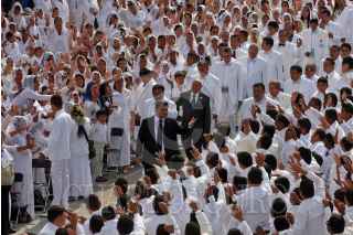 GUADALAJARA, JALISCO 14AGOSTO2015.- Hoy en la "Hermosa Provincia" de esta ciudad y en el marco de la “Santa Convocación 2015” se lleva a cabo la ceremonia previa a la Santa Cena, uno de los rituales mas importantes de La Luz del Mundo, que encabeza su Dios vivo, Naasón Joaquín García y a donde se dieron cita aproximadamente 500 mil personas de diversas partes del mundo. FOTO: FERNANDO CARRANZA GARCÍA /CUARTOSCURO.COM