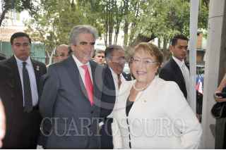 MÉXICO, D.F., 14AGOSTO2015.- Rafael Tovar y de Teresa, titular de CONACULTA, Michelle Bachelet, presidenta de Chile, encabezaron la ceremonia de develación de una placa conmemorativa por la solidaridad de México durante el golpe de Estado en Chile en 1973, en la "Casa de Chile" ubicada en la colonia San José Insurgentes. FOTO: CNCA /CUARTOSCURO.COM