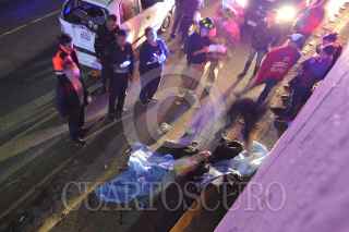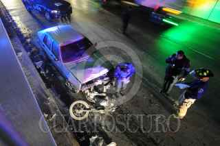 MÉXICO, D.F., 15AGOSTO2015.- Un hombre de aproximadamente 50 años, perdió la vida aplastado por dos vehículos sobre circuito Interior a la altura de Calzada de Guadalupe, Cuando este, empujaba a un auto Atos que había descompuesto en carriles centrales, siendo impactados por un Jetta a toda velocidad. El conductor de este se dio a la fuga abandonando el vehículo en el lugar. FOTO: LUIS CARBAYO /CUARTOSCURO.COM