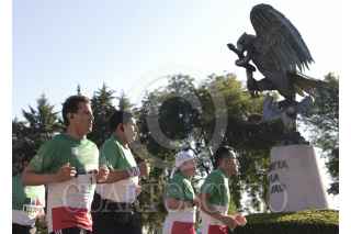 MÉXICO, D.F., 15AGOSTO2015.- Al concluir su participación en la 5ª. Edición de la Carrera Molino del Rey, que fue organizada por el Estado Mayor Presidencial, en la que recorrió los 10 kilómetros en un tiempo de 50 minutos con 48 segundos, el Presidente Enrique Peña Nieto dijo que es necesario hacer conciencia entre los mexicanos de la importancia de la práctica del deporte para combatir las enfermedades presentes en el país. FOTO: PRESIDENCIA /CUARTOSCURO.COM