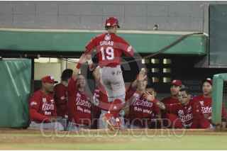 TIJUANA, BAJA CALIFORNIA, 15AGOSTO2015.- Cuadrangular de Samar Leyva, durante el encuentro entre Toros de Tijuana y Diablos Rojos de México, realizado en el Estadio Gasmart, dentro de la última serie de temporada regular de ambos equipos en la Liga Mexicana de Béisbol. FOTO CHRISTIAN SERNA /CUARTOSCURO.COM