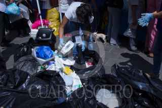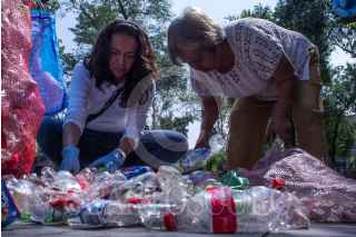MÉXICO, D.F., 16AGOSTO2015.- Personal de la delegación Cuauhtémoc como parte de la Feria ambiental que realizan realizó el “Plastianguis” en la Alameja de Santa Maria la Ribera el cual busca fomentar la cultura del reciclaje. FOTO: ENRIQUE ORDÓÑEZ /CUARTOSCURO.COM