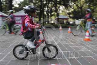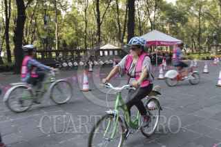 MÉXICO, D.F., 16AGOSTO2015.- Personas de todas las edades se presentaron al último día de Bici Escuela, en el Bosque de Chapultepec, en donde se impartieron clases para enseñar a conducir, o bien, para mejorar la habilidad de conducción. FOTO: DANIEL HUERTA /CUARTOSCURO.COM