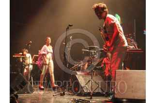 MÉXICO, D.F., 16AGOSTO2015.- La noche de ayer se presentó en el foro Plaza Condesa el grupo colombiano Bomba Estéreo, como parte de su tour "Amanecer", su cuarto álbum discográfico. Liliana Saumet (Voz), Simón Mejía (bajo y sintetizadores) y Julián Salazar (guitarra y sintetizadores), pusieron a bailar al público con la mezcla de música electrónica, rock, reggae, cumbia y la champeta. FOTO: FELIX MÁRQUEZ /CUARTOSCURO.COM