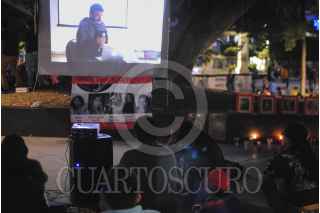 CHILPANCINGO, GUERRERO, 16AGOSTO2015.- Jóvenes que pertenecieron al movimiento 132, colocaron un tendedero con imágenes informativas, proyectaron vídeos, colocaron veladoras y fotografías de las cuatro mujeres y el fotorreportero. exigieron el esclarecimiento del multihomicidio en la colonia Narvarte. La actividad tuvo lugar en el zócalo de esta ciudad bajo un árbol al que denominan “El árbol de la Dignidad”. FOTO: JOSÉ I. HERNÁNDEZ /CUARTOSCURO.COM