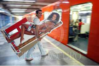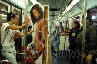 MEXICO D.F. 19MAYO2006.- Un joven viaja en el metro cargando la foto de una modelo despues de asistir al durante el tercer día de actividades de la Expo Sexo y Entretenimiento que realiza en el palacio de los deportes. FOTO: Germán Romero/CUARTOSCURO.COM