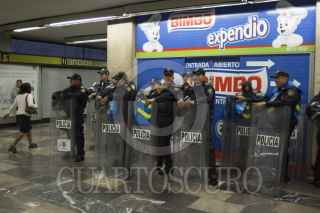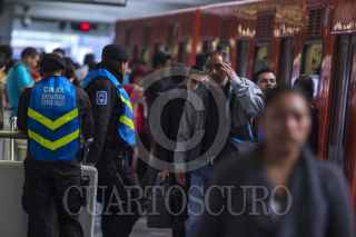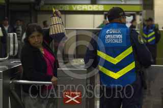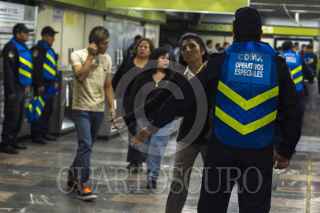 MÉXICO, D.F., 16AGOSTO2015.- Elementos de la Secretaria de Seguridad Pública del Distrito Federal realizaron un operativo especial para evitar la entrada a vendedores dentro de las instalaciones del metro, principalmente a los denominados "Bocineros". FOTO: ENRIQUE ORDÓÑEZ /CUARTOSCURO.COM