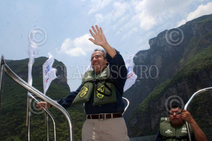 CAÑON DEL SUMIDERO, CHIAPAS 19MAYO2006.- El candidato del PAN a la Presidencia de la República. Felipe Calderón, realizó una visita a este escenario natural, en donde estuvo acompañado de panistas de la localidad, en donde dirigió un discurso. FOTO: Alfredo Guerrero/CUARTOSCURO.COM