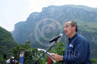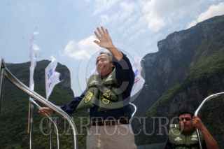 CAÑON DEL SUMIDERO, CHIAPAS 19MAYO2006.- El candidato del PAN a la Presidencia de la República. Felipe Calderón, realizó una visita a este escenario natural, en donde estuvo acompañado de panistas de la localidad, en donde dirigió un discurso. FOTO: Alfredo Guerrero/CUARTOSCURO.COM