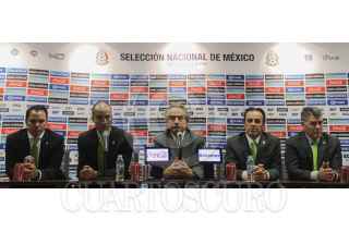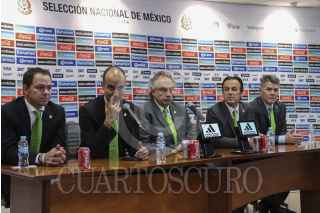 MÉXICO, D.F., 17AGOSTO2015.- Desio Di Maria, presento en conferencia de prensa al nuevo comité deportivo de la selección mexicana de fútbol. Como director de selecciones nacionales a Guillermo Cantú, Fernando Cerrilla, es el nuevo director operativo, Santiago Baños es ahora el director deportivo y Héctor González ocupa el puesto de director de arbitraje. No mencionaron al nuevo director técnico y decidieron no responder ninguna pregunta al respecto. FOTO: ISABEL MATEOS /CUARTOSCURO.COM