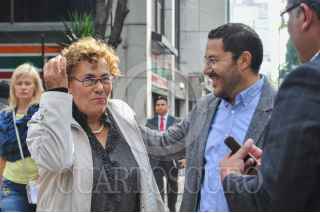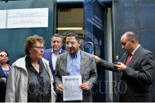 MÉXICO, D.F., 18AGOSTO2015.- Martí Batres Guadarrama, presidente de MORENA acompañado de Bertha Elena Luján Uranga, Secretaria General del Movimiento de Regeneración Nacional, asistieron a interponer una denuncia en la Procuraduría General de la República contra servidores públicos por la violación de la Ley de Protección de Datos Personales en la entrega de televisores FOTO: SAÚL LÓPEZ /CUARTOSCURO.COM