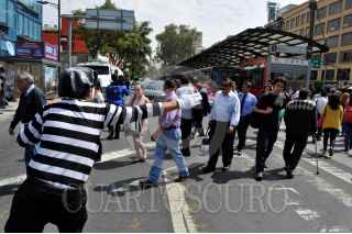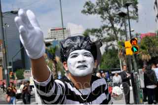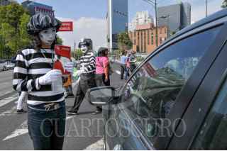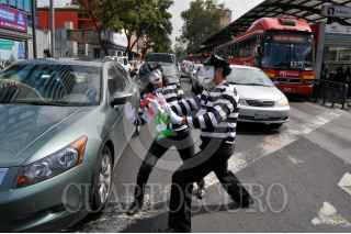 MÉXICO, D.F., 18AGOSTO2015.- Mimos exhortan a conductores de vehículos a respetar el área de peatones y señalamientos viales en cruceros, dicha actividad la organizó el Consejo Ciudadano de Seguridad Pública y se llevara acabo los próximos 10 días en los cruceros más peligrosos de la capital. FOTO: SAÚL LÓPEZ /CUARTOSCURO.COM