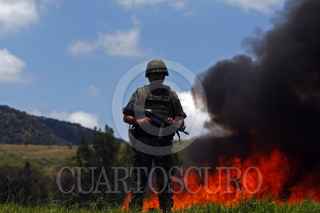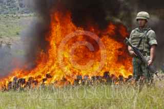 ZAPOPAN, JALISCO. 18AGOSTO2015.-Hoy en el Club Cinegético Jalisciense A.C. se llevo a cabo la incineración y destrucción de narcóticos entre los que destacaban, 5 millones 493 mil 223 kilogramos de marihuana, 17 mil 774 kilogramos de semilla de marihuana, 7.2 kilogramos de plantas de marihuana, .294 kilogramos de metanfetamina, 28 unidades de psicotrópicos y dos objetos del delito. FOTO: FERNANDO CARRANZA GARCIA / CUARTOSCURO.COM