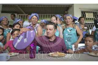 APATZINGÁN, MICHOACÁN, 18AGOSTO2015.- En el marco de la gira de trabajo que realizó en esta entidad, el Presidente Enrique Peña Nieto se trasladó a la comunidad de Chiquihuitillo donde visitó un comedor comunitario de la Cruzada Nacional Contra el Hambre para comer y convivir con mujeres y niños. FOTO: PRESIDENCIA /CUARTOSCURO.COM
