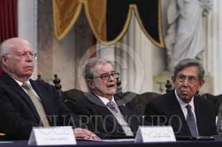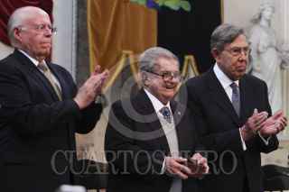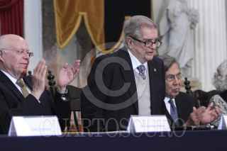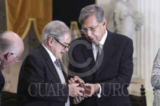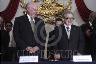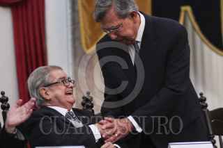 MÉXICO, D.F., 18AGOSTO2015.- El Centro Lázaro Cardenas y Amalia Solorzano, A.C., distinguió a Miguel León Portilla con el premio Amalia Solorzano de Cardenas 2015, en reconocimiento a su trabajo y aportaciones a la sociedad mexicana. La ceremonia tuvo como sede el Antiguo Palacio de Minería y presidieron el evento; Enrique Fernandez Fassnacht, Clara Jusidman, José Narro Robles, Cuauhtémoc Cardenas, Adolfo Gilly y Marta Lamas. FOTO: ISABEL MATEOS /CUARTOSCURO.COM