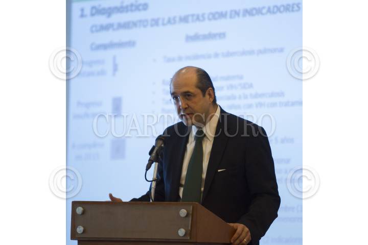 MÉXICO, D.F., 19AGOSTO2015.- Eduardo González Pier es Subsecretario de Integración y Desarrollo del Sector Salud en la Secretaría de Salud, durante el Informe de Avances de los Objetivos de Desarrollo del Milenio, que se realizó en la sede de la Secretaría de Relaciones Exteriores. FOTO: MOISÉS PABLO /CUARTOSCURO.COM