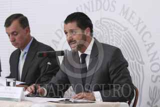 MÉXICO, D.F., 19AGOSTO2015.- En conferencia de prensa presentan el nuevo plan de acción de conservación y protección de las diferentes especies de tortugas marinas que viven y pasan por las costas mexicanas. Presidieron el evento el Dr. Guillermo Haro Bélchez, director de PROFEPA y el Lic. Alejandro del Mazo Maza, comisionado nacional de Áreas Naturales. FOTO: ISABEL MATEOS /CUARTOSCURO.COM