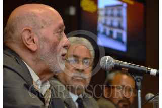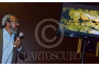 MÉXICO, D.F., 20AGOSTO2015.- Arqueólogos y especialistas en la materia pertenecientes al INAH, comunicaron ante medios de comunicación, el hallazgo del Tzompantli de Tenochtitlán, situado debajo del Templo Mayor en el predio de República de Guatemala. a pesar de se desconoce todavía el número total de cráneos que componen esta pared conformada entre otros elementos, por cal y arena, sería uno de los vestigios más relevantes para la arqueología en México. En la imagen, Eduardo Matos, investigador del INAH, Pedro Francisco Sánchez, coordinador nacional de Arqueología, y Raúl Barrera, supervisor del Programa de Arqueología Urbana del Templo Mayor. FOTO: MARÍA JOSÉ MARTÍNEZ /CUARTOSCURO.COM