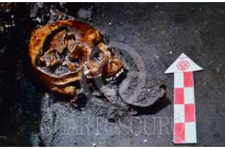 MÉXICO, D.F., 20AGOSTO2015.- Arqueólogos y especialistas en la materia pertenecientes al INAH, comunicaron ante medios de comunicación, el hallazgo del Tzompantli de Tenochtitlán, situado debajo del Templo Mayor en el predio de República de Guatemala. a pesar de se desconoce todavía el número total de cráneos que componen esta pared conformada entre otros elementos, por cal y arena, sería uno de los vestigios más relevantes para la arqueología en México. FOTO: INAH /CUARTOSCURO.COM