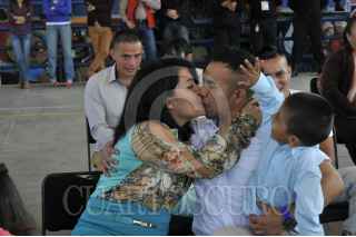 MÉXICO, D.F., 20AGOSTO2015.- 20 parejas contrajeron matrimonio como parte de la campaña Lazos en Reclusión 2015, una ellas de la comunidad Lésbico, Gay, Bisexual, Transgénero, Travesti, Transexual e Intersexual (LGBTTTI) realizado en el reclusorio varonil de Santa Martha Acatitla. En la ceremonia estuvieron presentes Hazael Ruiz Ortega, subsecretario de Sistema Penitenciario del Distrito Federal y Manuel Granados, titular de la Consejería Jurídica del Distrito Federal, así como familiares de los internos. FOTO: SAÚL LÓPEZ /CUARTOSCURO.COM