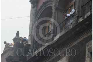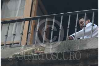 MÉXICO, D.F., 20AGOSTO2015.- Gran expectación causó una Iguana de metro y medio, la cual estaba tomando el sol en el edificio del Club Bancario, ubicada en la calle de 16 de septiembre y Bolívar, en la colonia centro. El dueño del reptil llamado Hulk, de seis años, es el sacerdote de la iglesia Nuestra Señora de la Caridad que se ubica a un lado del club. FOTO: ARMANDO MONROY /CUARTOSCURO.COM