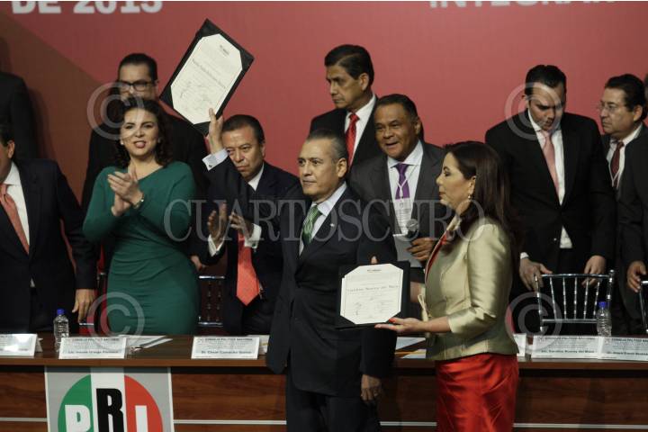 MÉXICO, D.F., 20AGOSTO2015.- Manlio Fabio Beltrones, nuevo dirigente nacional del PRI, besa a su nieta, hija de Silvana Beltrones, durante la ceremonia en donde fue nombrado nuevo dirigente en la sede nacional del tricolor. FOTO: MOISÉS PABLO /CUARTOSCURO.COM