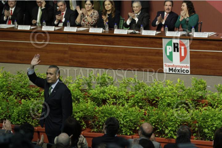 MÉXICO, D.F., 20AGOSTO2015.- Manlio Fabio Beltrones, nuevo dirigente nacional del PRI, besa a su nieta, hija de Silvana Beltrones, durante la ceremonia en donde fue nombrado nuevo dirigente en la sede nacional del tricolor. FOTO: MOISÉS PABLO /CUARTOSCURO.COM