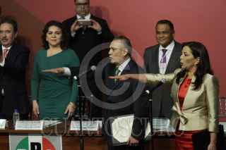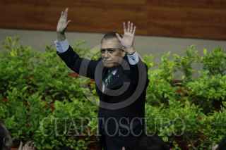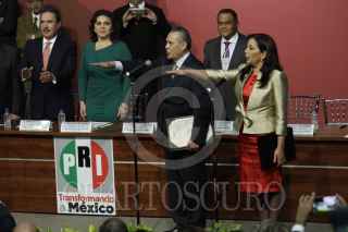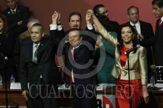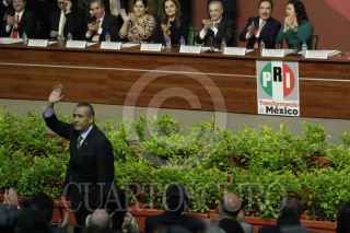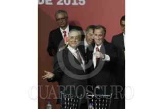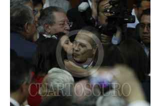 MÉXICO, D.F., 20AGOSTO2015.- Manlio Fabio Beltrones, nuevo dirigente nacional del PRI, besa a su nieta, hija de Silvana Beltrones, durante la ceremonia en donde fue nombrado nuevo dirigente en la sede nacional del tricolor. FOTO: MOISÉS PABLO /CUARTOSCURO.COM