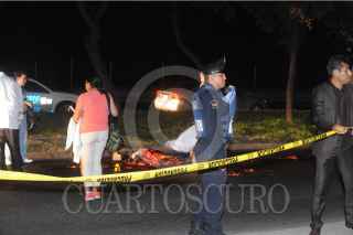 MÉXICO D.F., 21AGOSTO2015.- La falta de capacitación del nuevo sistema de Justicia Penal, a personal del Ministerio Publico de la Coordinación Territorial 4 de Tlalpan, hace que estos se preocupen más por la labor periodística, que el levantamiento del cuerpo sin vida de un hombre atropellado. Dichos elementos que no mostraron ninguna ética de profesión, ya que en ningún momento preservaron el lugar y no utilizaron equipo de protección alguna, para realizar sus labores, dieron órdenes a policías del sector Coapa, que no permitirán que se tomaran fotografías de dicho evento a reporteros, tomando el propio Ministerio Publico una lona para impedir nuestra labor. FOTO: LUIS CARBAYO /CUARTOSCURO.COM