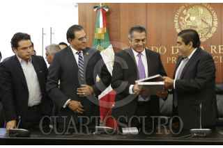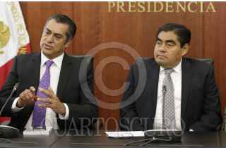 MÉXICO, D.F., 21AGOSTO2015.- Miguel Barbosa Huerta, presidente de la Mesa Directiva del Senado, y Jaime Rodríguez Calderón, gobernador electo de Nuevo León, ofrecieron una conferencia de prensa luego de una reunión en la que también estuvieron presentes los vicepresidentes de la Mesa Directiva, José Rosas Aispuro y Luis Sánchez; y los senadores Martha Tagle, Luis Humberto Fernández, Zoé Robledo y Benjamín Robles. FOTO: CUARTOSCURO.COM