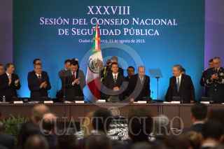 MÉXICO, D.F., 21AGOSTO2015.- Javier Duarte de Ochoa, gobernador de Veracruz, conversa con la Procuradora General de la República Arely Gómez, durante la celebración de la XXXVIII Sesión del Consejo Nacional de Seguridad Pública realizada en Palacio Nacional. FOTO: ADOLFO VLADIMIR /CUARTOSCURO.COM