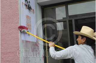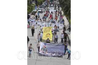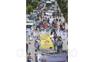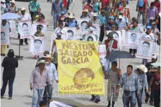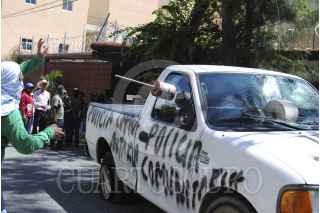 CHILPANCINGO, GUERRERO, 21AGOSTO2015.- A dos años del encarcelamiento de la comandanta de la policía comunitaria de Olinala, Nestora Salgado Gracia, marcharon familiares de la luchadora social, normalista de Ayotzinapa, padres de familia de los 43 estudiantes desaparecidos en Iguala, algunos maestros de la CETEG, policías comunitarios de Tixtla, para exigir la liberación de la comandanta y la de todos los presos políticos, así como, la presentación con vida de los 43 jóvenes desaparecidos. El contingente partió del monumento a Nicolás Bravo Rueda, hicieron una parada en la Comisión de Derechos Humanos, también protestaron afuera del Tribunal Superior de Justicia, a su paso rompieron parabrisas y ventanas de una camioneta. FOTO: JOSÉ I. HERNÁNDEZ /CUARTOSCURO.COM