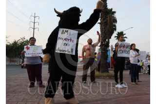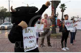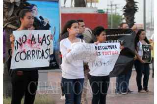 MONTERREY, NUEVO LEÓN, 21AGOSTO2015.- Al rededor de 20 personas se congregaron a las afueras de la Monumental Plaza de Toros para protestar en contra del maltrato de animales durante una corrida. FOTO: GABRIELA PÉREZ MONTIEL / CUARTOSCURO.COM