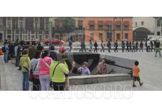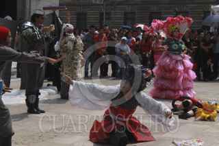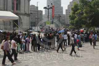 MÉXICO, D.F., 22AGOSTO2015.- Frente al Palacio de Bellas, este medio, una presentación artística, entretuvo a decenas de personas que esperaban ver la exposición de la obra de Leonardo da Vinci, que tiene un costo de 49 pesos y que mañana domingo será el último día. FOTO: DANIEL HUERTA /CUARTOSCURO.COM