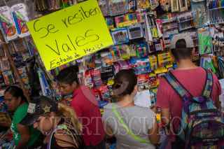 MÉXICO, D.F., 22AGOSTO2015.- Capitalinos atiborran las calles de Regina y Mesones, en la colonia Centro de la capital. Cientos de personas asisten a comprar útiles escolares a precios más accesibles que en otros negocios de la ciudad para el próximo inicio de clases en instituciones de nivel básico y medio de educación, de acuerdo con el calendario de la Secretaría de Educación Pública. FOTO: DAVID POLO /CUARTOSCURO.COM