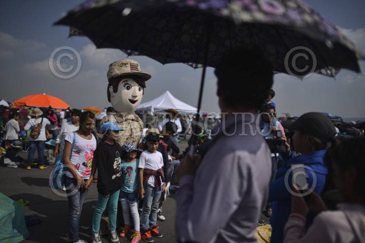MÉXICO, D.F., 22AGOSTO2015.- Con la participación de 600 elementos en 60 aviones y 23 helicópteros se realizó el quinto espactáculo aéreo "Fueraza Aérea Mexicana… 100 Años de Lealtad", realizado en la base No. 1 de Santa Lucia. La Secretaría de la Defensa Nacional Nacional informó que tuvo una asistencia de 160 mil personas. FOTO: ADOLFO VLADIMIR /CUARTOSCURO.COM
