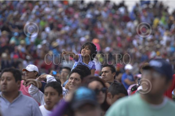 MÉXICO, D.F., 22AGOSTO2015.- Con la participación de 600 elementos en 60 aviones y 23 helicópteros se realizó el quinto espactáculo aéreo "Fueraza Aérea Mexicana… 100 Años de Lealtad", realizado en la base No. 1 de Santa Lucia. La Secretaría de la Defensa Nacional Nacional informó que tuvo una asistencia de 160 mil personas. FOTO: ADOLFO VLADIMIR /CUARTOSCURO.COM