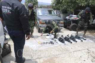 ZAPOPAN, JALISCO, 22AGOSTO2015.- La Procuraduría General de la República (PGR) aseguró en dos vehículos tipo sedán cuatro lanzagranadas calibre .40 milímetros; una subametralladora calibre .9 milímetros; un cargador de disco; una pistola calibre .38; tres cargadores para calibre .38 súper; un cargador para calibre .9 milímetros; dos cargadores para calibre 7.62X39 y una culata para fusil por una presunta violación a la Ley Federal de Armas de Fuego y Explosivos. FOTO: PGR /CUARTOSCURO.COM