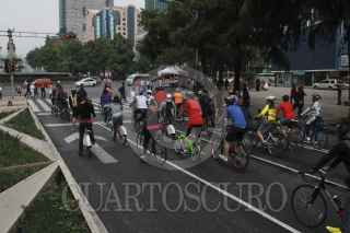 MÉXICO, D.F., 23AGOSTO2015.- Como parte del programa "Muévete en Bici" todos los domingos son miles de personas las que toman sus bicicletas para dar un paseo por la avenida Reforma, en donde se dan clases gratuitas de mecanica para bicicletas. FOTO: DANIEL HUERTA /CUARTOSCURO.COM