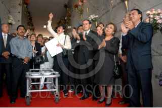 MÉXICO D.F. 24MAYO2006.- Lucrecia Gris viuda de Fernández y Ari Fernández, dieron el ultimo adios al cronista deportivo Angel Fernández en un mausoleo al sur de la ciudad. FOTO: Guillermo Perea / CUARTOSCURO.COM