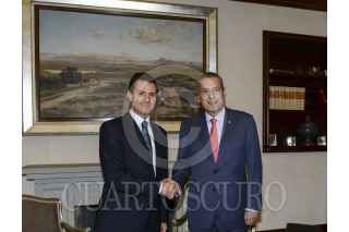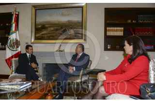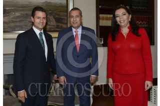 MÉXICO D.F., 24AGOSTO2015.- El Presidente de la República, Enrique Peña Nieto, se reunió hoy en la Residencia Oficial de Los Pinos con el Presidente y la Secretaria General del Comité Ejecutivo Nacional del Partido Revolucionario Institucional, Manlio Fabio Beltrones y Carolina Monroy, con quienes abordó distintos temas de la agenda nacional. FOTO: PRESIDENCIA /CUARTOSCURO.COM