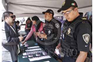 MÉXICO, D.F., 25AGOSTO2015.- Policías de la ciudad entregaron información a los ciudadanos, durante la ceremonia de Difusión del Programa de Instalación de Cámaras de Videovigilancia en Unidades Habitacionales, en la Explanada Central de la Unidad Habitacional Independencia, FOTO: ISAAC ESQUIVEL /CUARTOSCURO.COM