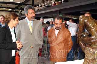 MÉXICO D.F. 24MAYO2006.- El titular del IPN, Enrique Villa Rivera; la Directora del Museo Soumaya, Soumaya Slim Domit, y el Secretario General del Sindicato Nacional de Telefonistas de la República Mexicana, Francisco Hernández Juárez, hicieron el corte de listón de la exposición escultórica del artista plástico Auguste Rodin. FOTO: IPN/CUARTOSCURO.COM